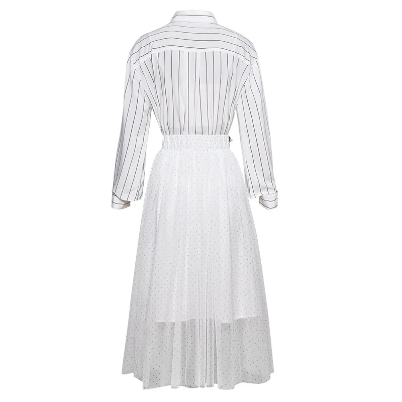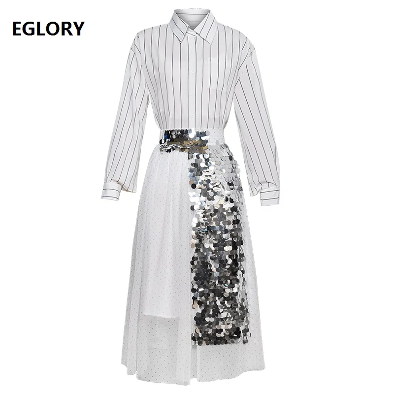 This item is next has features of Top Grade Designer Clothing Sets 2019 Spring Summer Skirt Suit Women Long Sleeve Striped Shirt+Sequ.