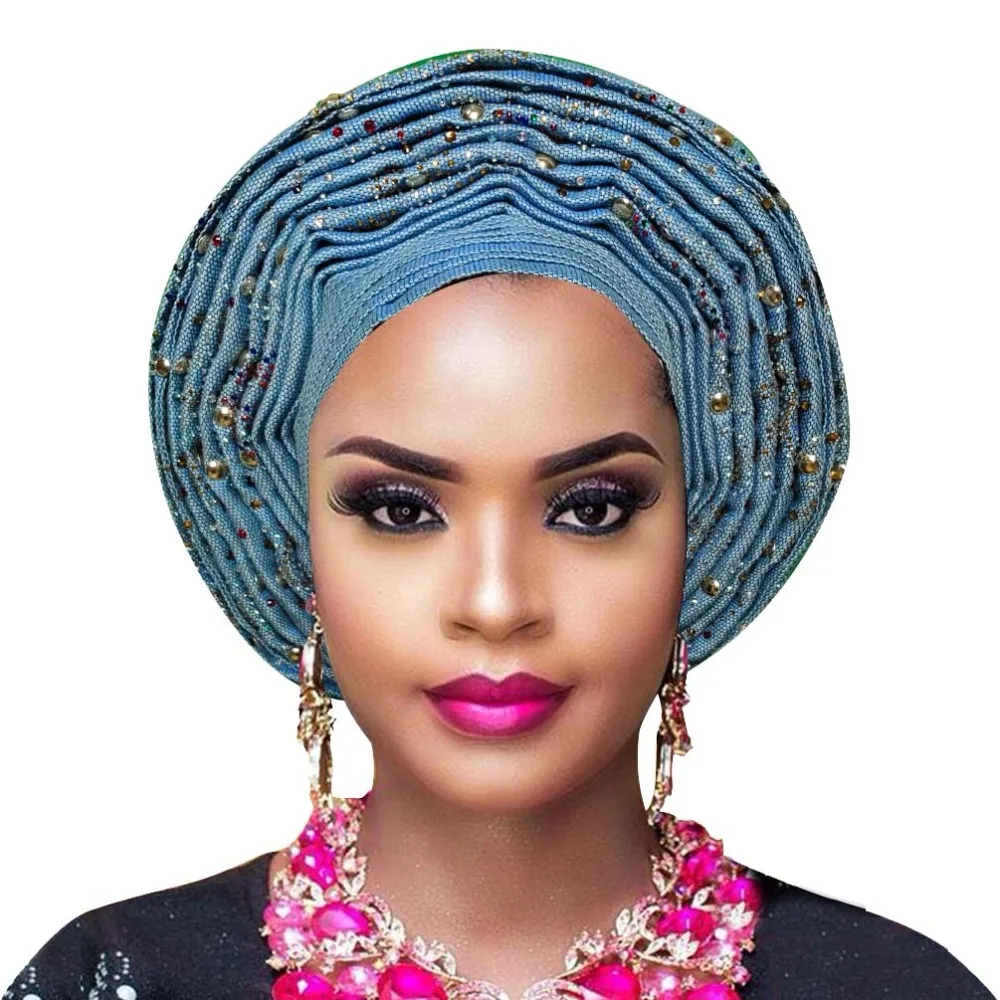 Special Price Popular Women headwrap aso oke auto gele for aso ebi african headtie with beads