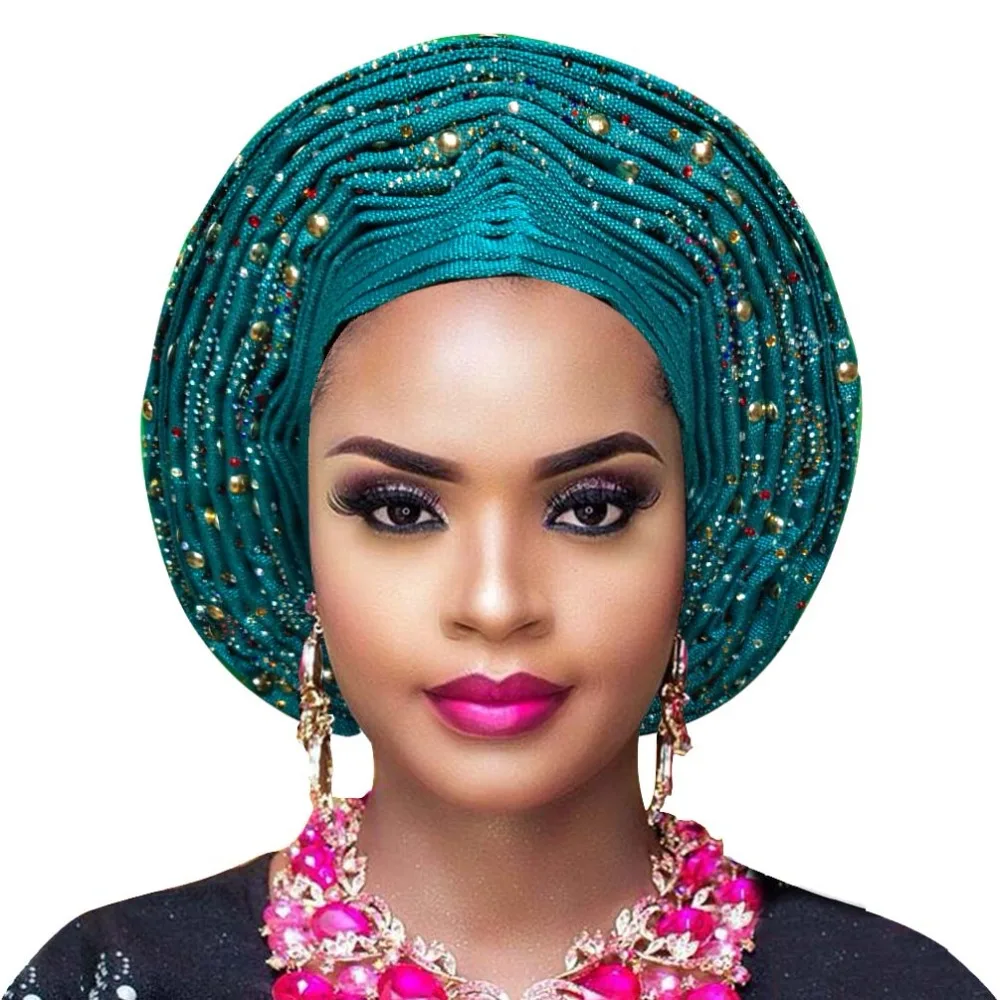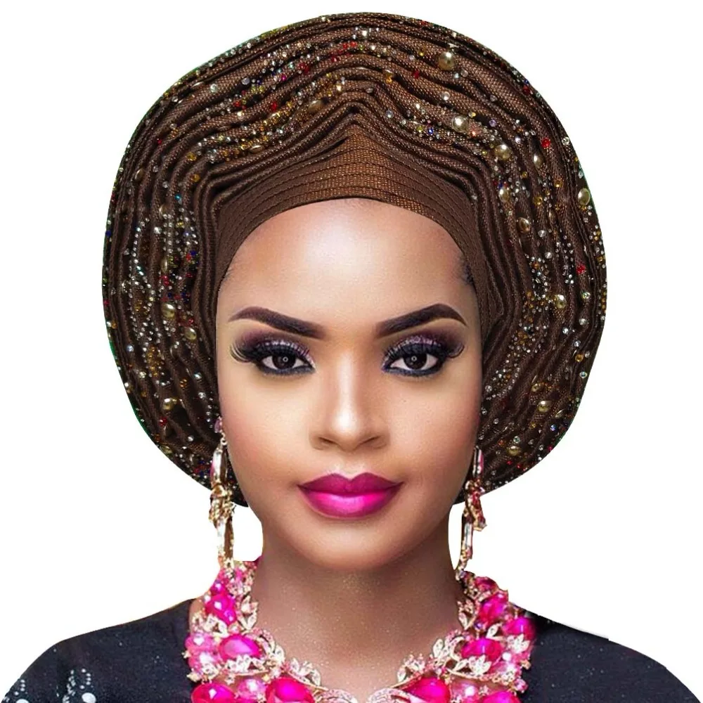 Best Sale Popular Women headwrap aso oke auto gele for aso ebi african headtie with beads